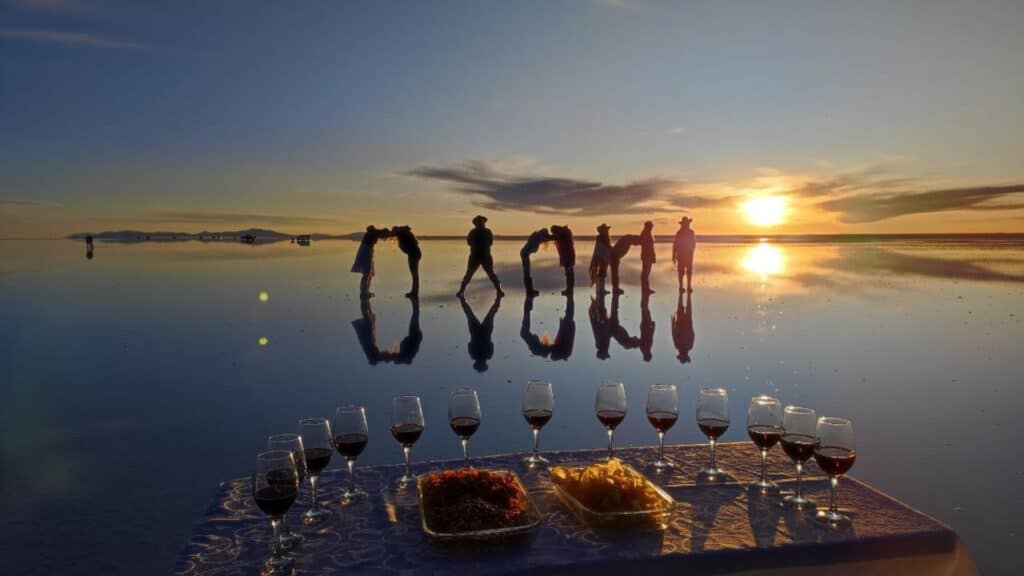 Imagina atravesar un vasto desierto de sal blanca que se extiende hasta el horizonte, con el sol reflejándose en la superficie como un espejo y el fresco aire andino llenando tus pulmones. Degustarás un almuerzo en medio de las salinas, rodeado de nada más que silencio y cielo.